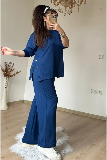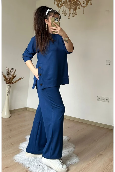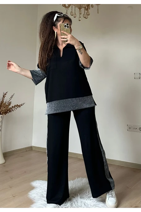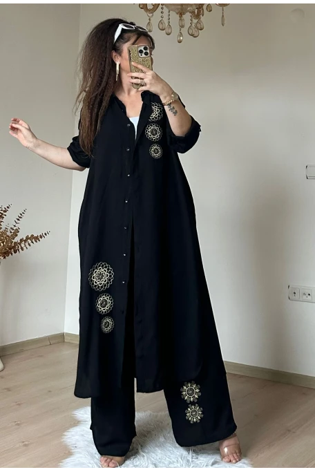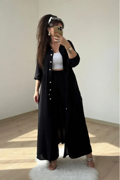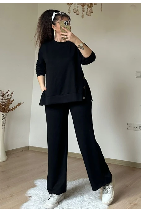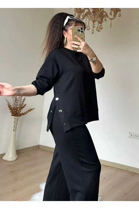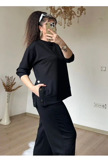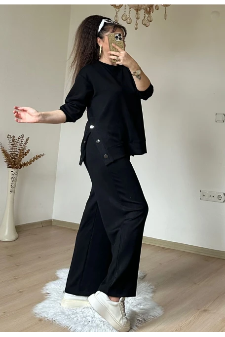Uzun Kol Yan Çıtçıtlı Siyah Takım