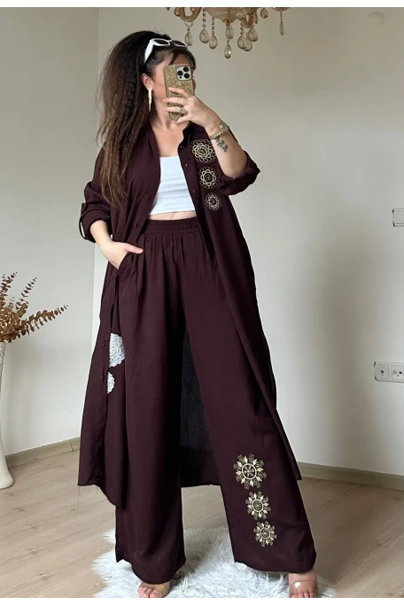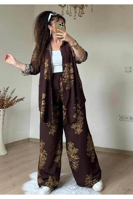 Kapusonlu Taşlı Takım Kahve Büyük Beden