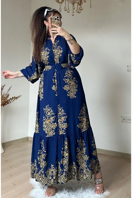 Hakim Yaka Otantık Gömlek Elbıse Lacıvert