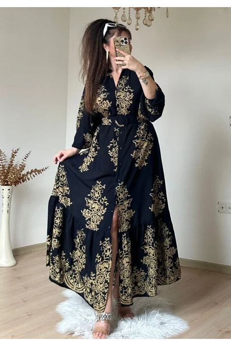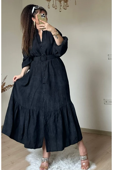 Hakim Yaka Otantık Gömlek Elbıse Siyah