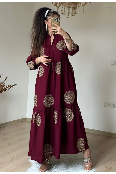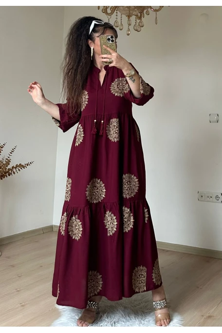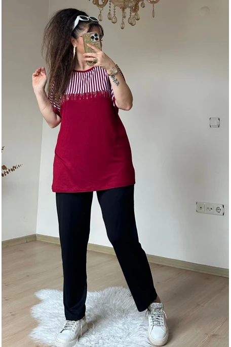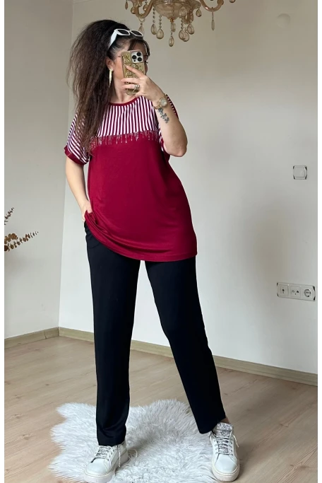 Kapusonlu Taşlı Takım Bordo Büyük Beden