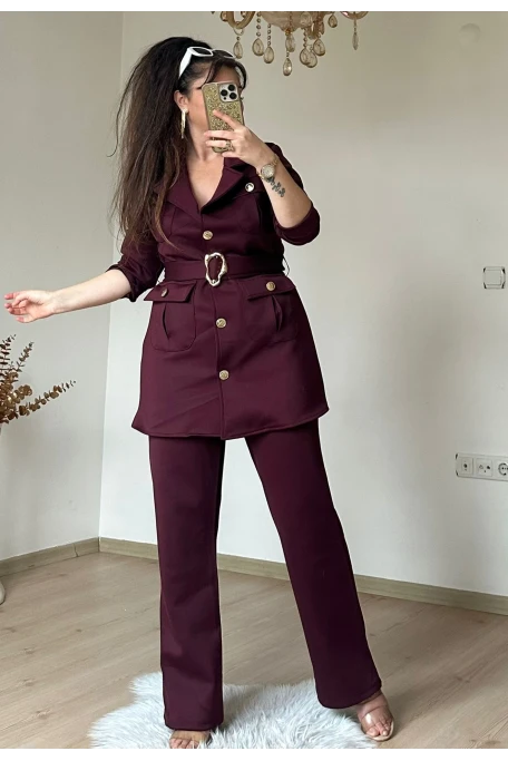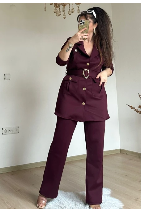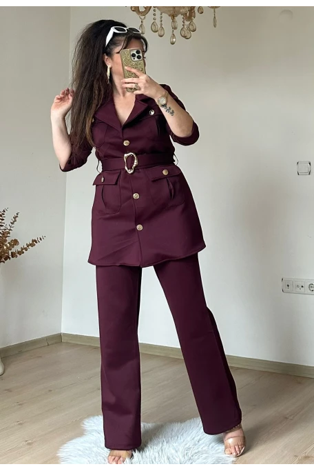 Kemerli Gold Dügmelı Takım Bordo