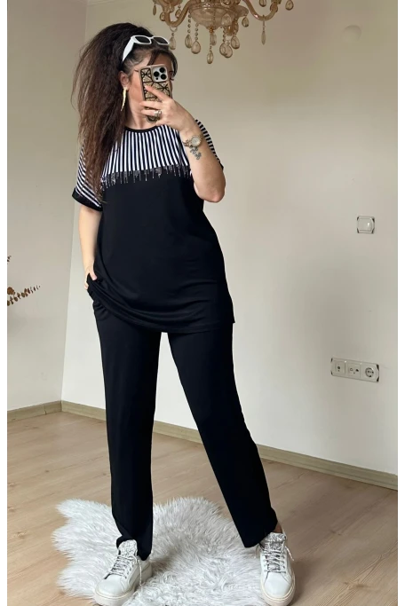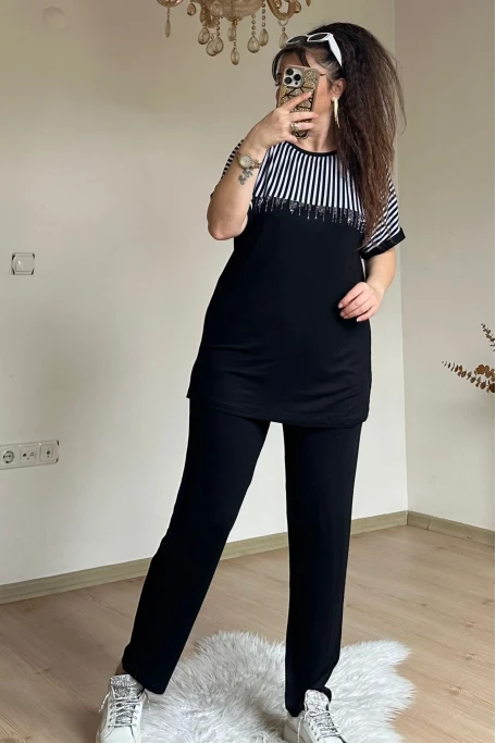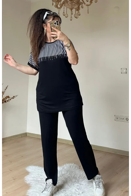 Roba Çizgili Takım Sıyah