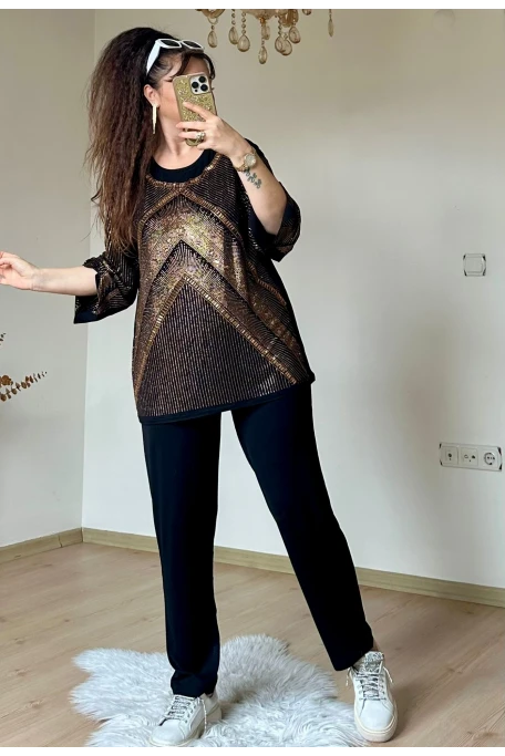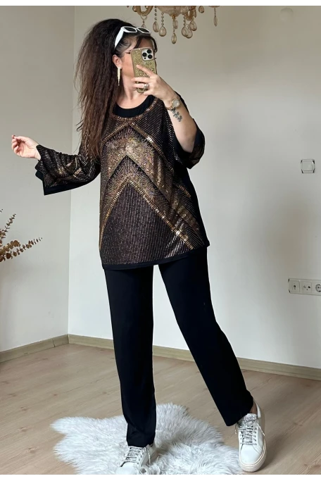 Kapusonlu Taşlı Takım Siyah Büyük Beden