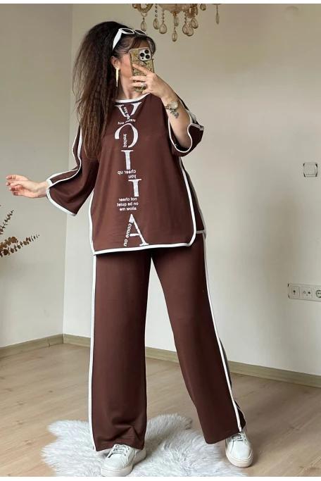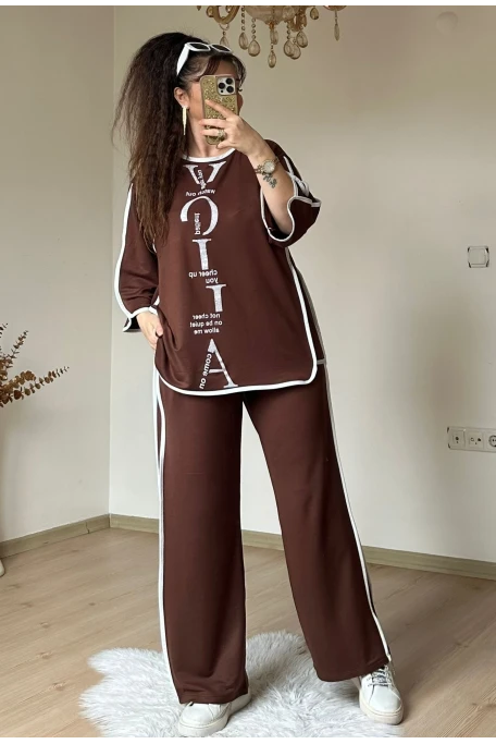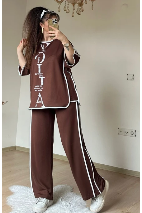 Bol Paca Otantık Gömlekli Takım Kahve