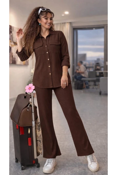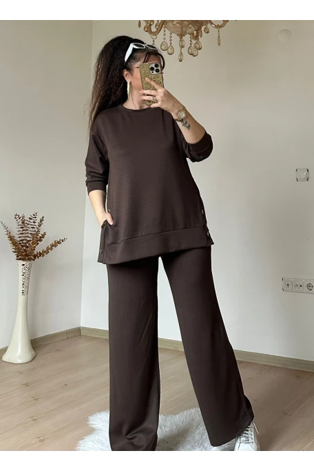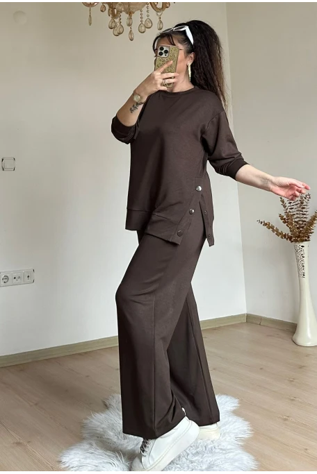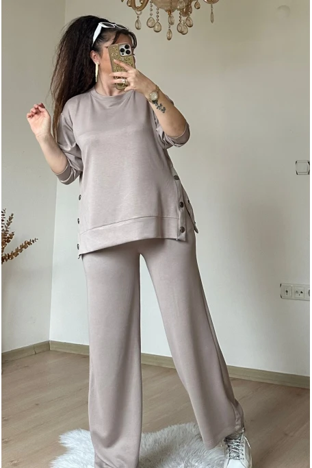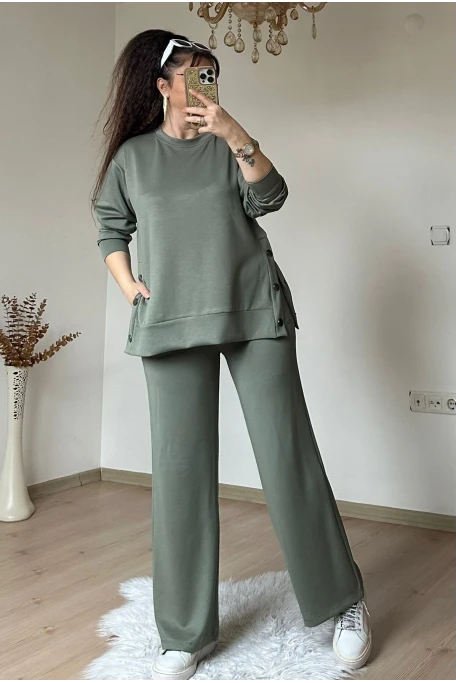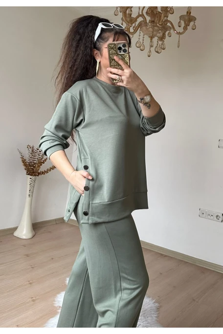 Uzun Kol Yan Çıtçıtlı Haki Takım
