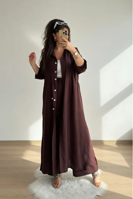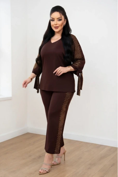 Kol Bağcıklı Gold Sımlı Kahve Takım
