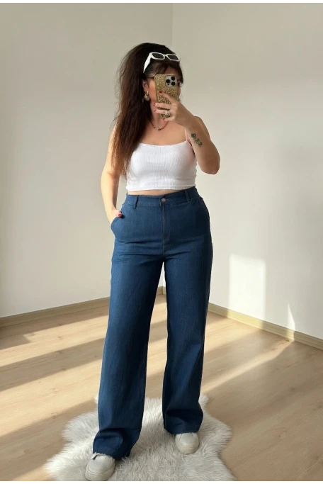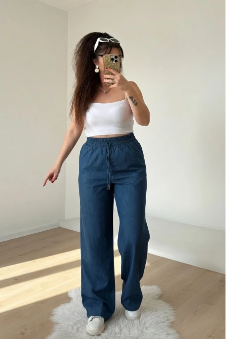 Bel Bağcıklı Lastıklı Kot Pantalon