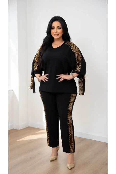 Kol Bağcıklı Gold Sımlı Siyah Takım