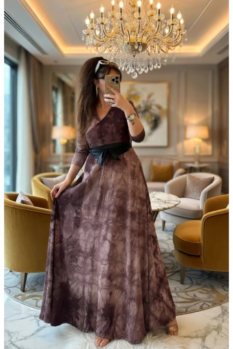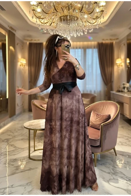 Tam Boy Dalmaçya Desen Kahve Elbise
