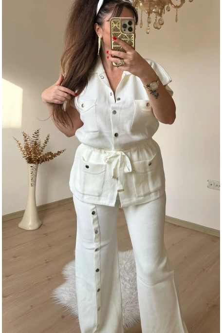 Cıtcılı Sıfır Kol Yelek Takım Beyaz