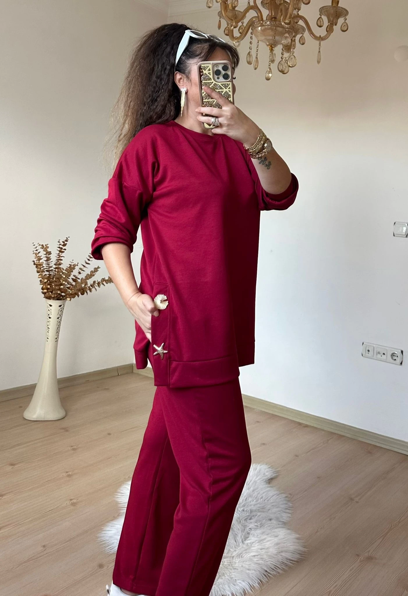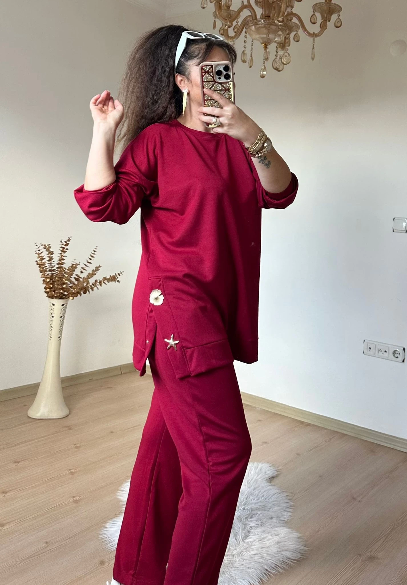 Denız Yıldızı Aksesuarlı Takım Bordo