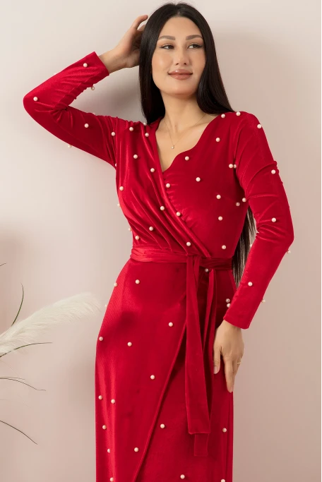 Çok Kaliteli İnci Ve Kadife kumaştan üretilmektedirBel dikişli Etek Kısmı Kruvaze Bacak Bölgesi GörülmezKendi Kumaşından Bel KuşaklıTam Kalıptır Manken Ölçüleri Ve Numune Beden Bilgisi: Bel:68 cm Göğüs: 84 cm Basen : 98 cm Boy:170 cm Numune Ürün Bedeni: S/36 Beden.