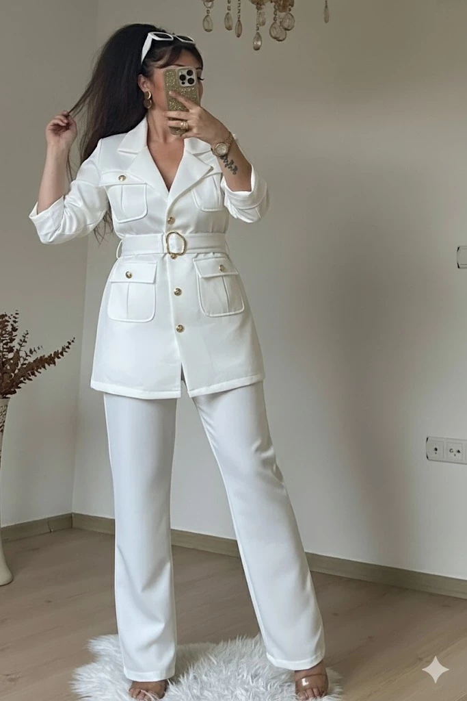 Yaka Taşlı Paça Detaylı Takım Siyah