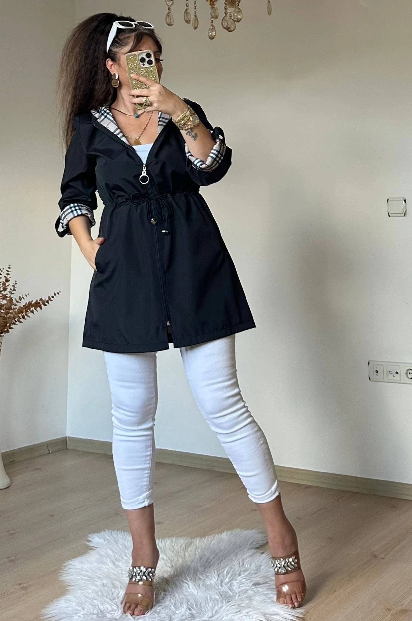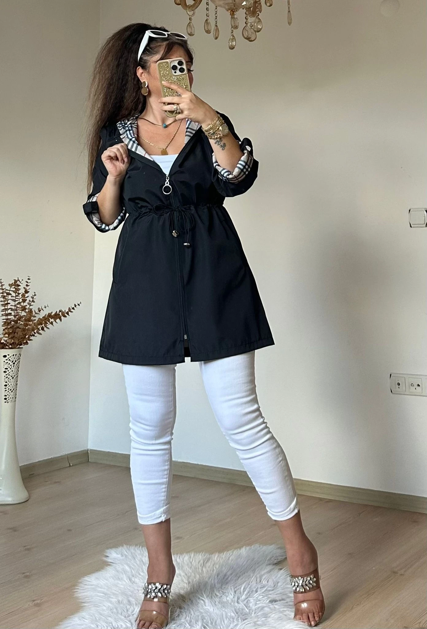 Cep Detay Büzgülü Kapitone Siyah Yelek
