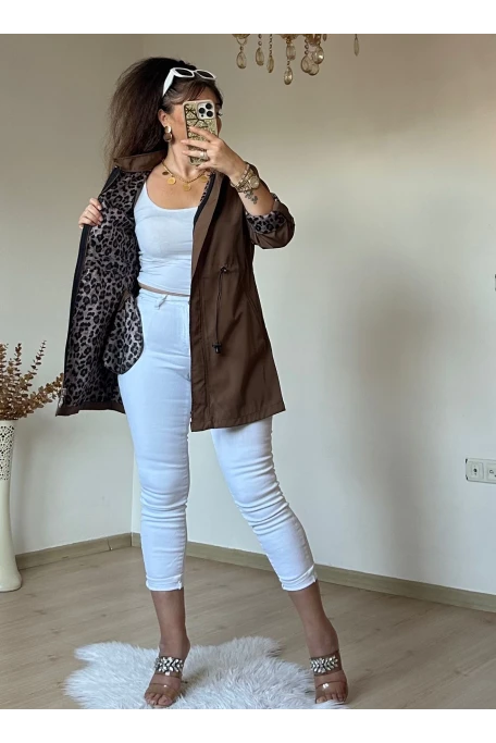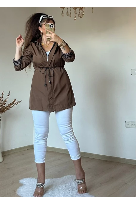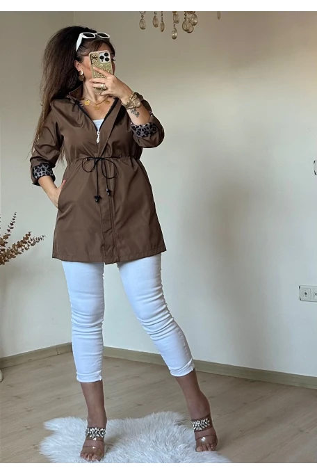 Kısa Leopar Trençkot Kahve