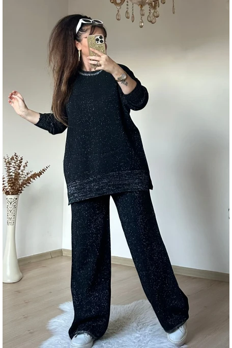 Dik Yaka Fermuarlı Yelekli Takım Siyah