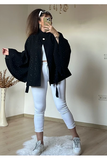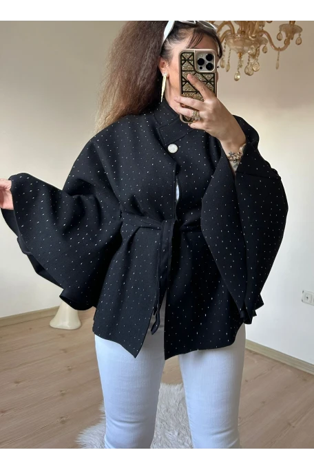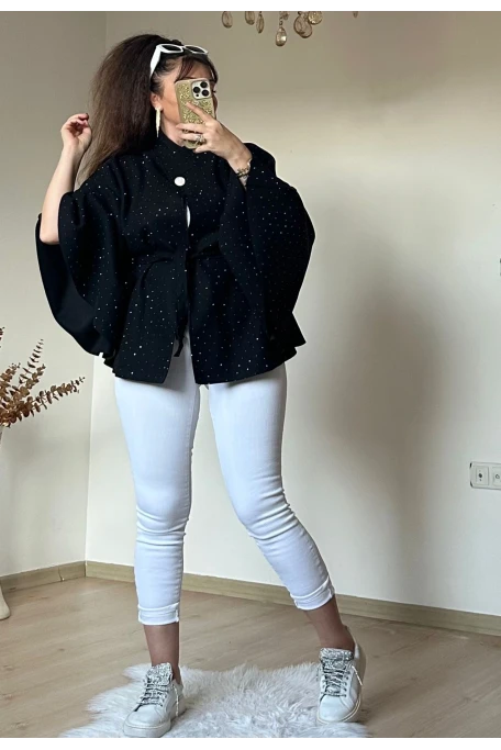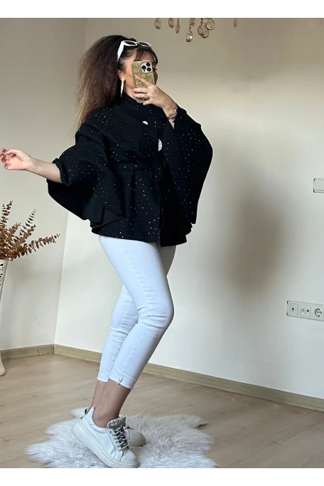 Pul Ve Kabartma Detaylı Tunik Hırka Siyah