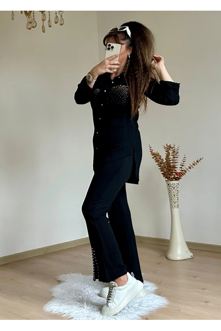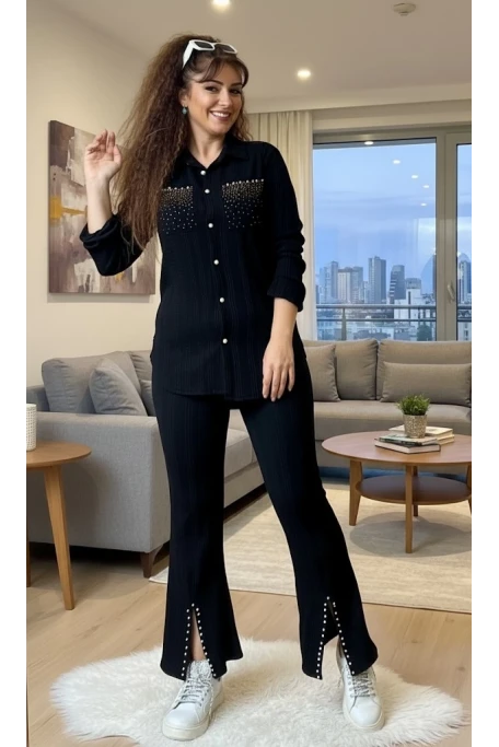 Yaka Taşlı Paça Detaylı Takım Siyah