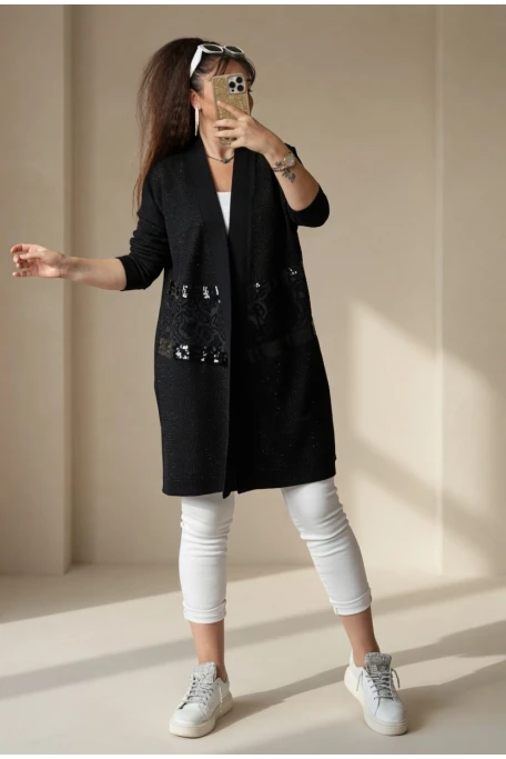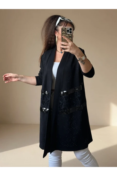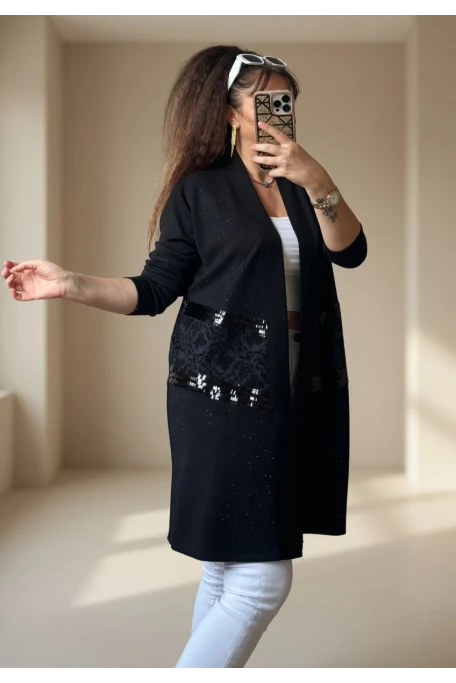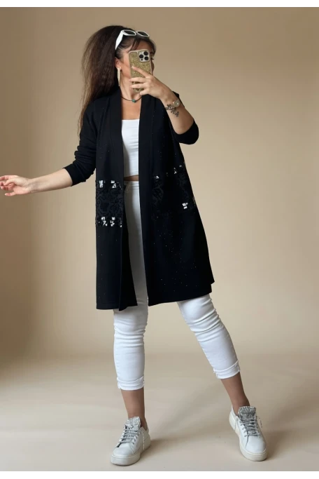 Pul Ve Kabartma Detaylı Tunik Hırka Siyah