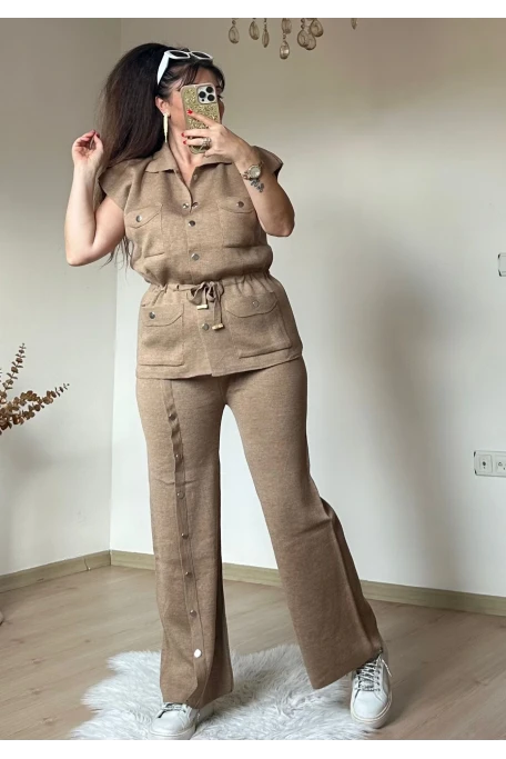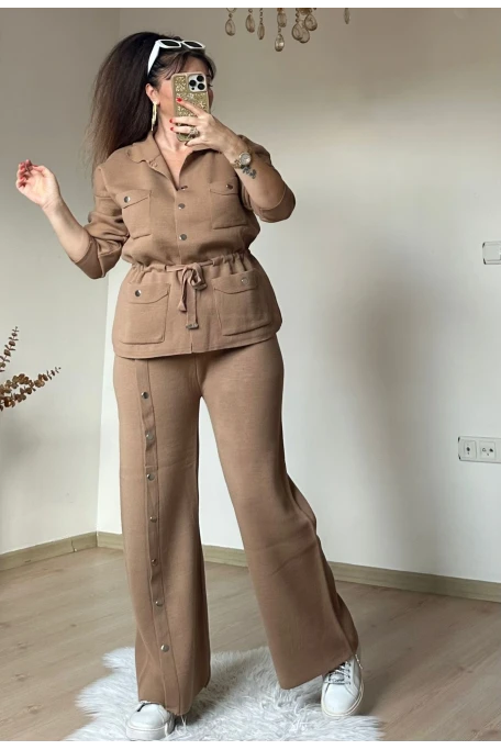 Cıtcılı Sıfır Kol Yelek Takım Kahve