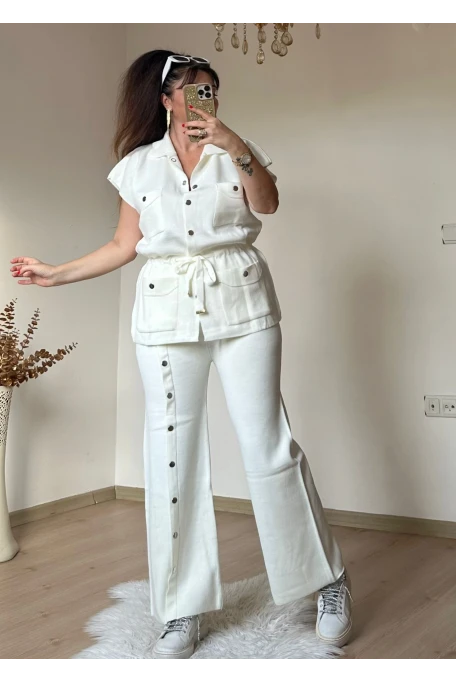 Cıtcılı Sıfır Kol Yelek Takım Beyaz