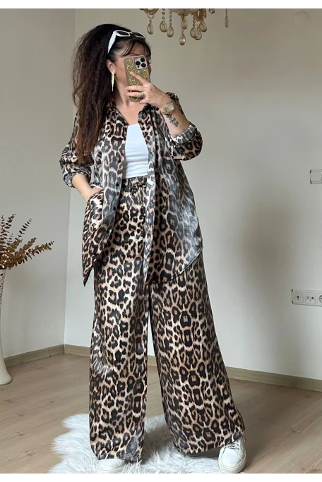 Bol Paca Leopar Gömlek Takım