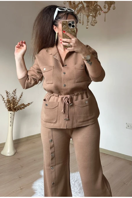 Cıtcılı Sıfır Kol Yelek Takım Kahve