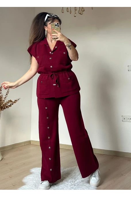 Cıtcılı Sıfır Kol Yelek Takım Bordo