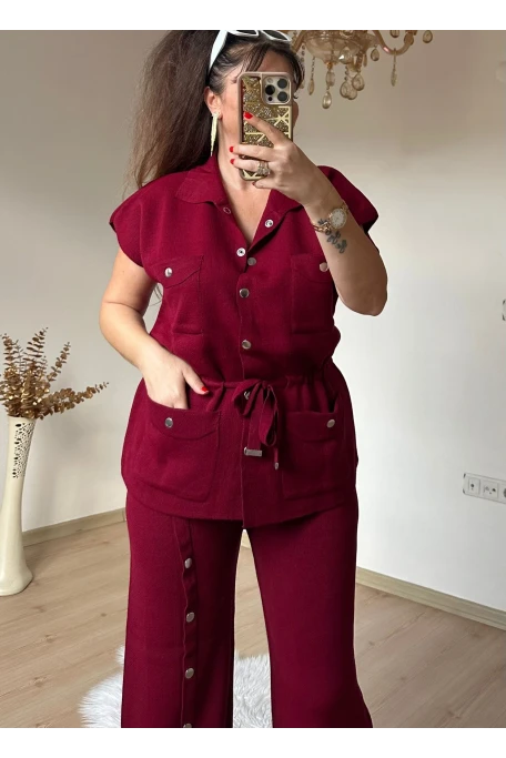 Cıtcılı Sıfır Kol Yelek Takım Bordo