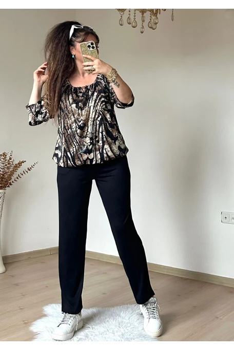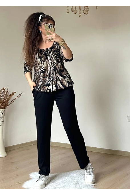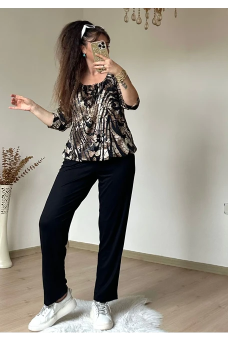 Pul Detaylı Leopar Takım Siyah