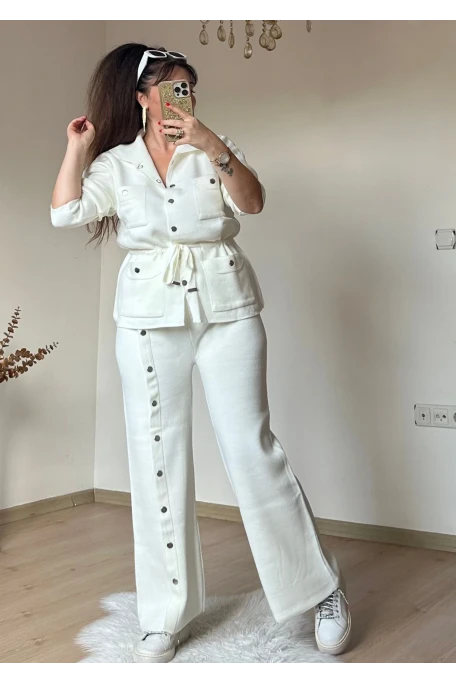 Cıtcılı Sıfır Kol Yelek Takım Beyaz