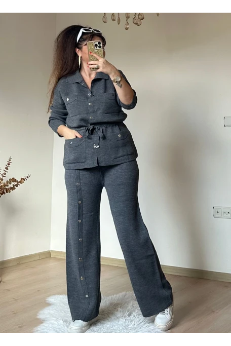 Cıtcılı Sıfır Kol Yelek Takım Grı
