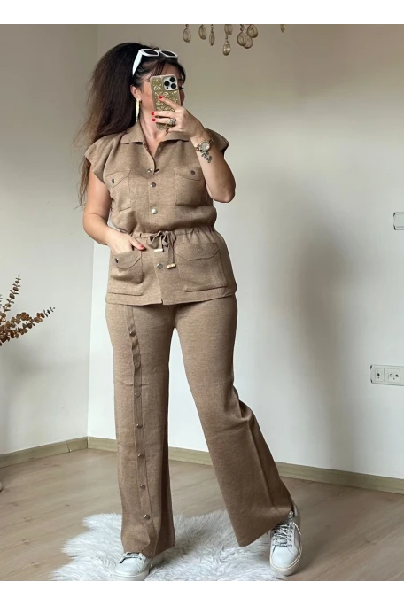 Cıtcılı Sıfır Kol Yelek Takım Kahve