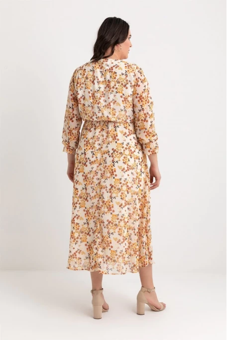 Ürünün uzunluğu 137 cm'dir. (1-3 cm arası değişiklik gösterebilir.)Ürünün kol uzunluğu 60 cm'dir. (1-3 cm arası değişiklik gösterebilir.)Modelin üzerindeki ürün S /36 bedendir.Modelin Ölçüleri: Boy: 1.65, Kilo: 53,Kumaş Türü: ŞifonÜrün astarlı ve kemerli olarak tasarlanmıştır.geniş kalıptır