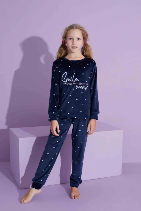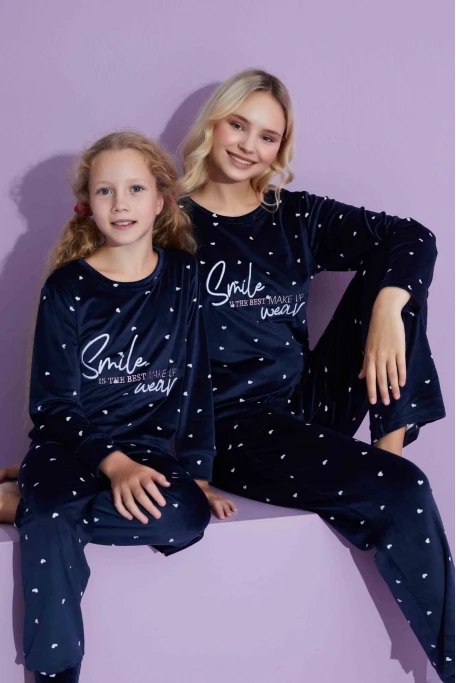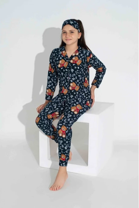 Lacivert Ayıcık Desen Çoçuk Pijama Takımı