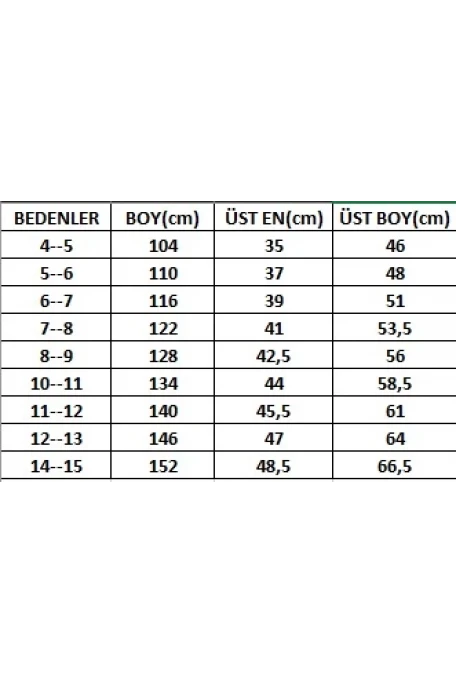 Kız çocuk Manken bedeni 7-8 yaştır.