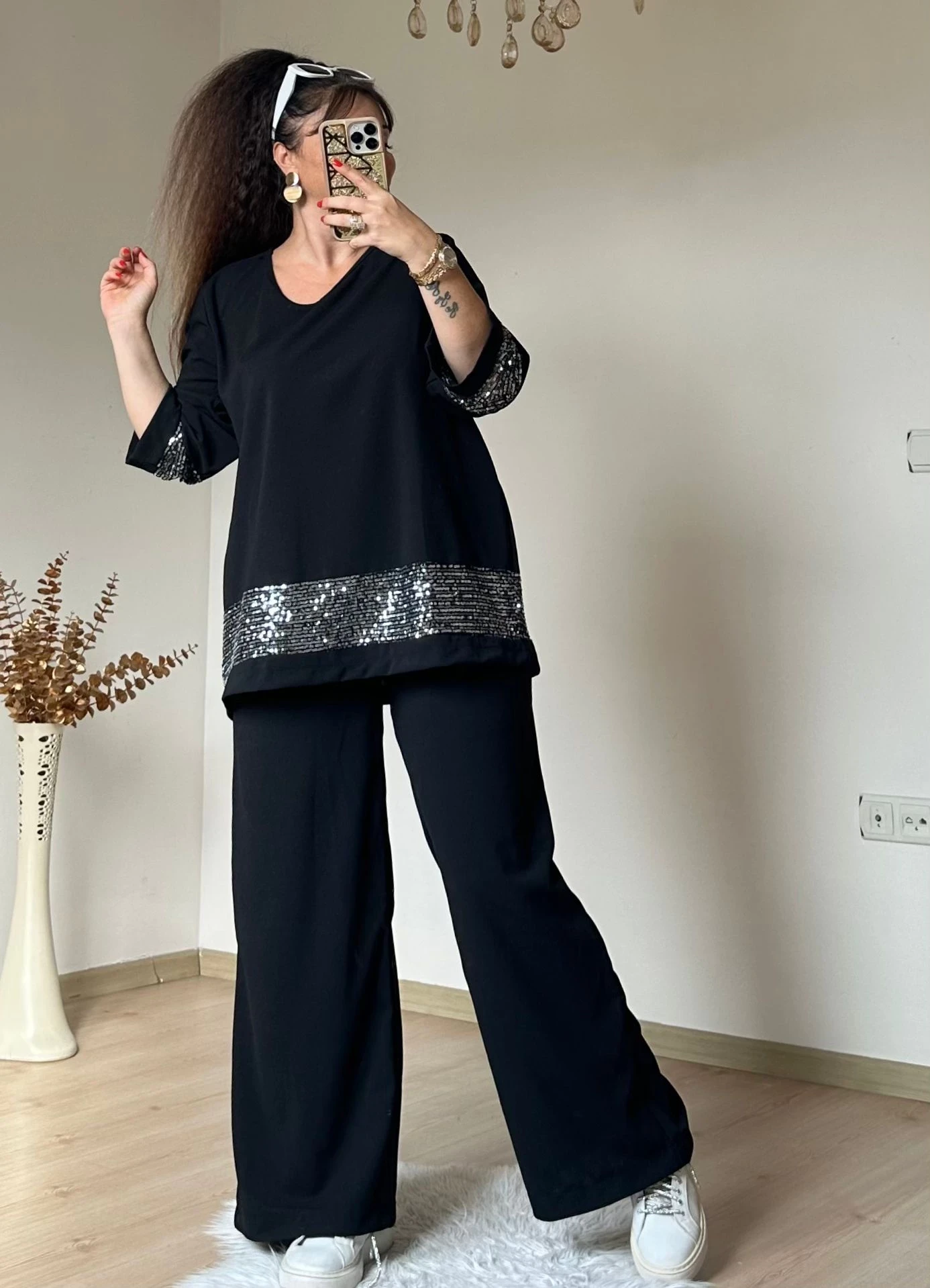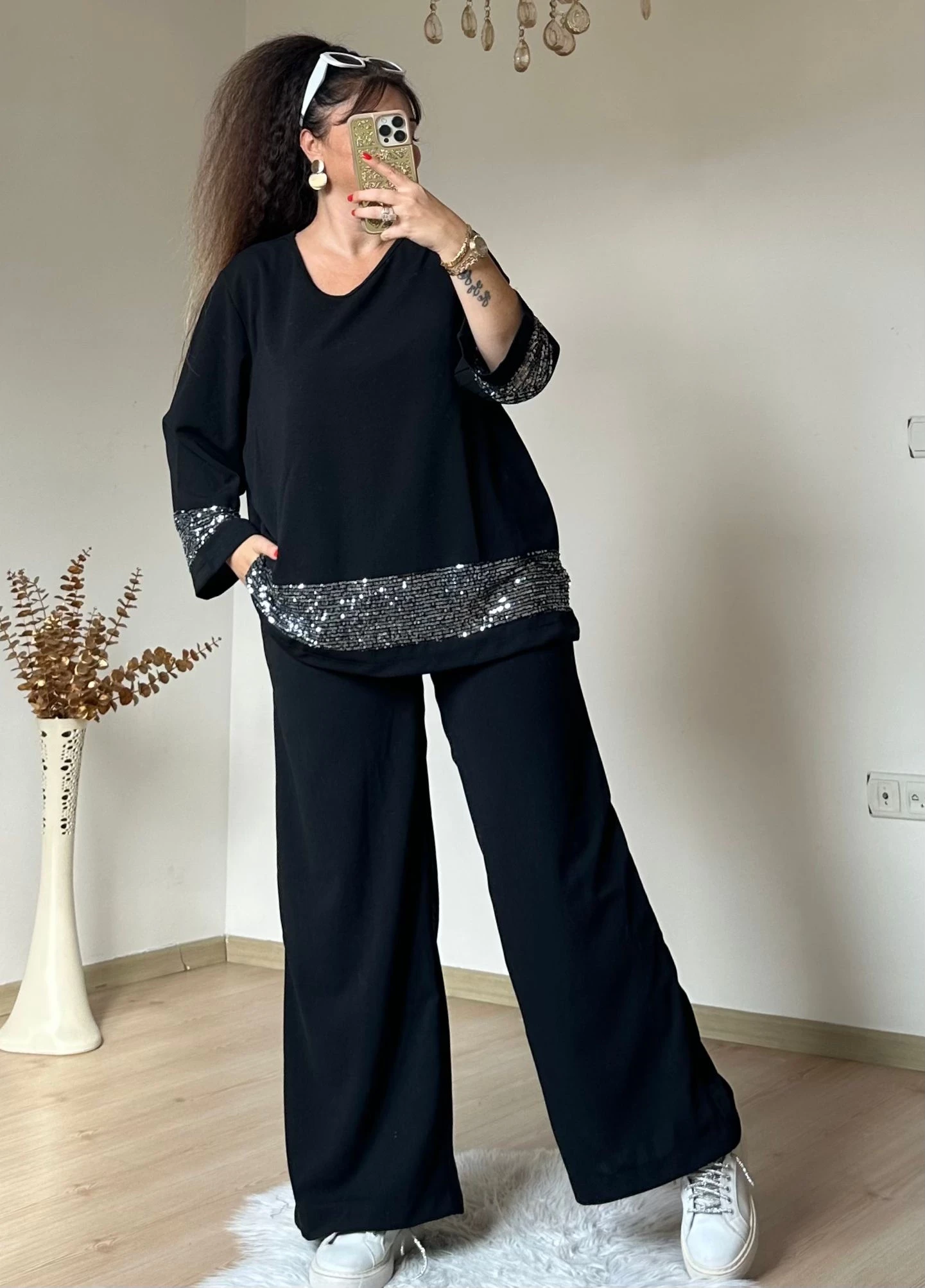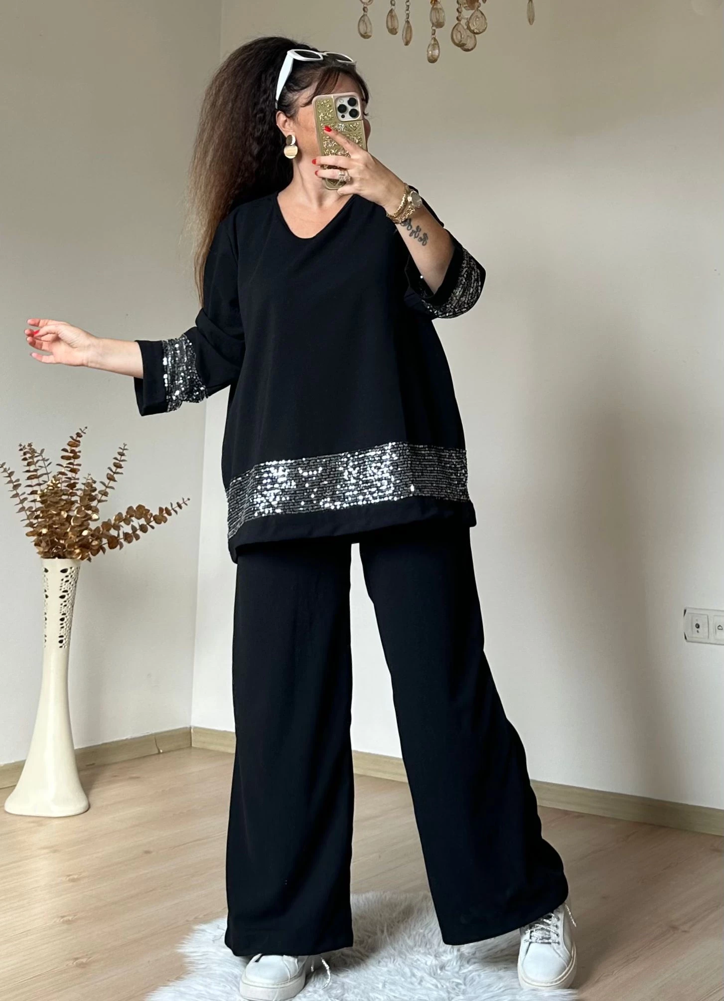 Etek ve Kol Pul Payetli Takım