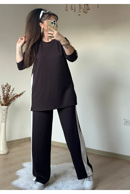 Dik Yaka Fermuarlı Yelekli Takım Kahve