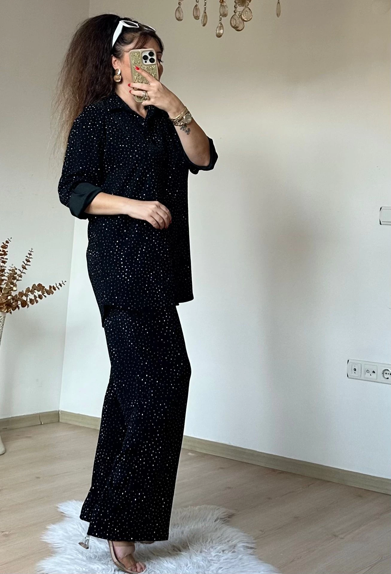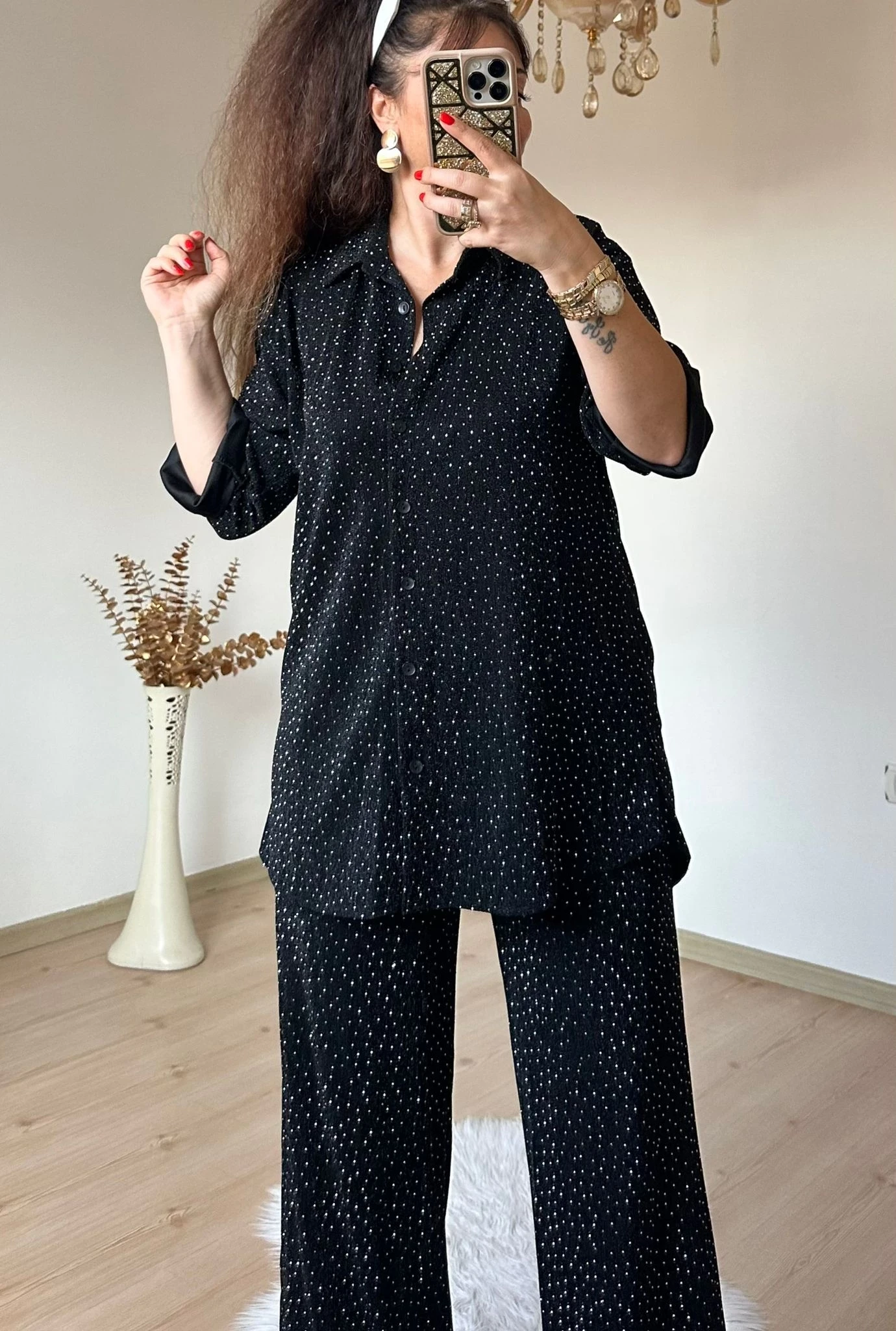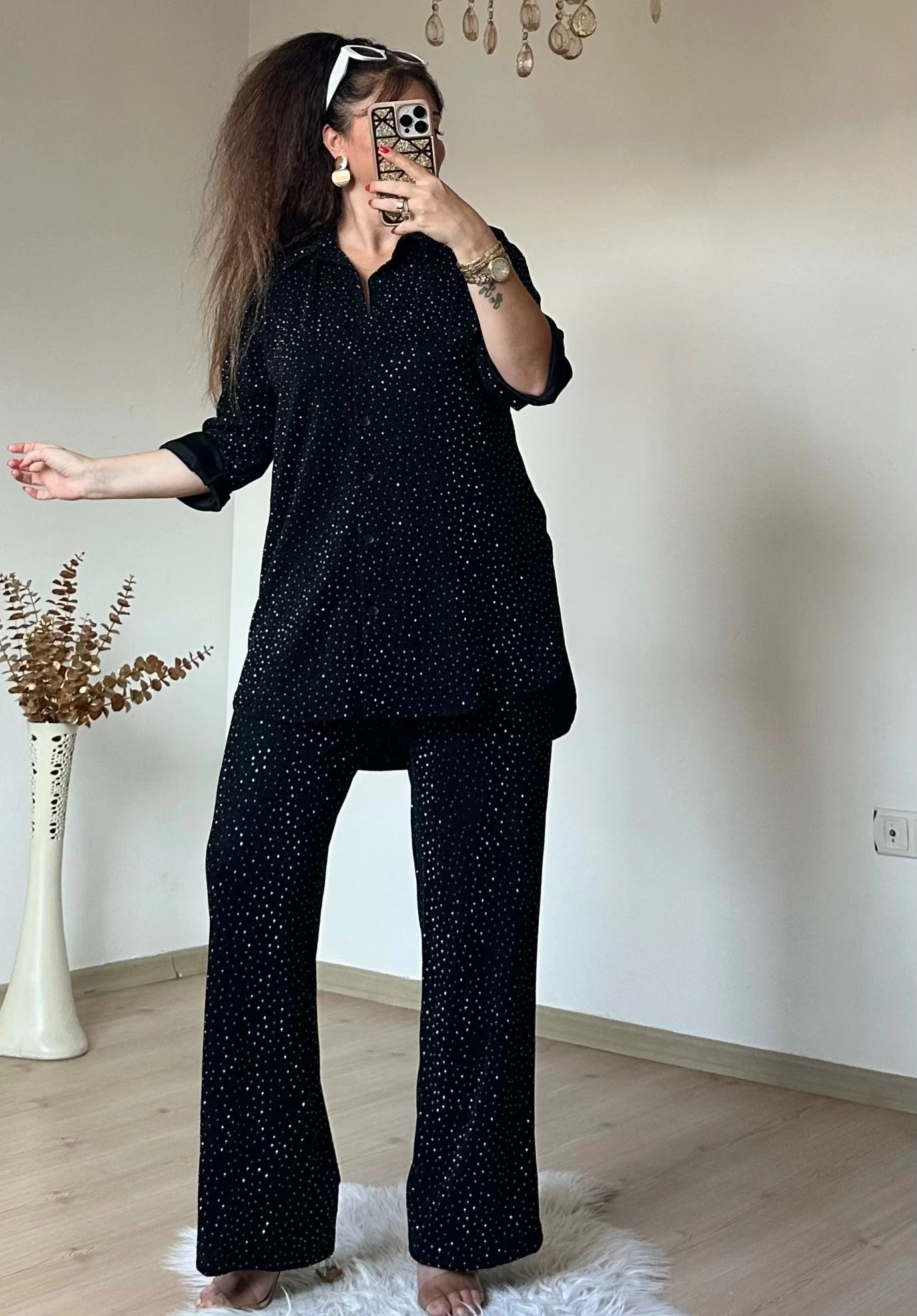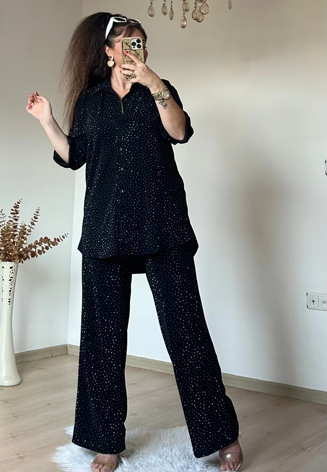 Işıltılı Gömlek Takım siyah
