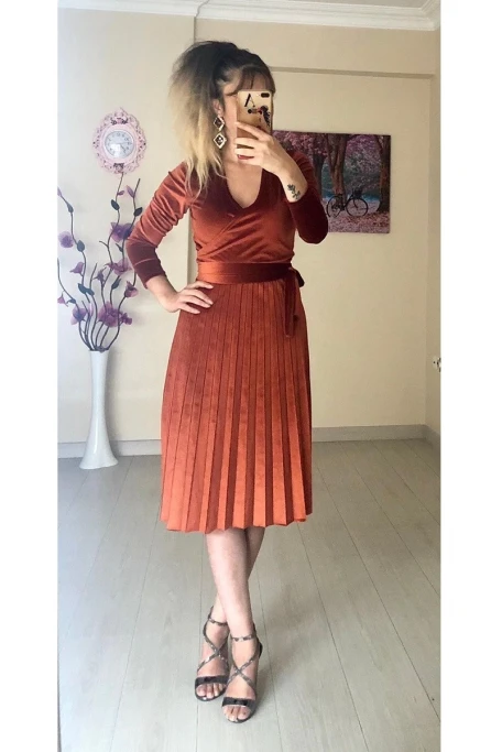 Kokteyl, Düğün, Nişan, Mezuniyet gibi davetlerde şıklığınızı bu kadife elbise ile tamamlayın.%95 Pamuk %5 LikraBoy 107 cm, Kol Boyu 54 cmGöğsü Anvlop Eteği Pliseli KadifeBele Kadar Oturan Belden Sonra Genişleyen ModelElastik KumaşNumune Bedeni : S/36/1MODEL BİLGİLERİ Boy: 182cmGöğüs: 92cmBel: 73cmKalça: 94cm