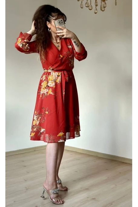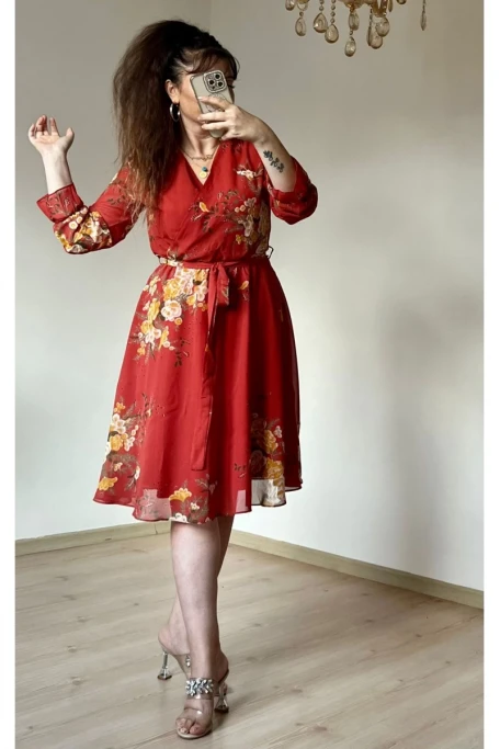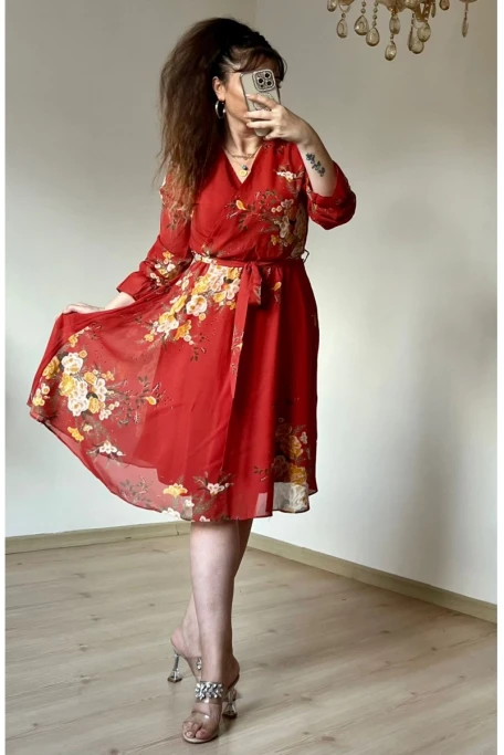 Zamansız parçaların yer almaya hazır olan elbise; bel kuşak ve bilek lastik detayları ile zarif bir stil oluşturuyor.Eteğindeki volanlar ile hareket kazan elbisenizi; zarif yüksek topuklu ayakkabılar ile tamamlayarak, şıklık gerektiren özel toplantı yada davetlerde kusursuz ve zarif bir görünümü yakalayabilirsiniz. -Midi Boy -Rahat Kesim -Şifon Kumaş -Kruvaze Yaka -Bel Kuşak Detay -Astarlı Ürün ÖzellikleriKruvaze Şifon Kuşaklı ElbiseNumune Ürün Uzunluk: 105 cm (1-3 cm arası değişkenlik gösterebilir.)Numune Ürün Kol Uzunluk: 60 cm (1-3 cm arası değişkenlik gösterebilir.)Kumaş Türü: ŞifonModel ÖlçüleriBoy: 1.65 cmKilo: 53 kgModel Üst: S/36 Alt: S/36/27 beden giyiyor