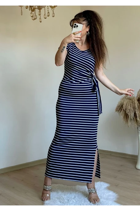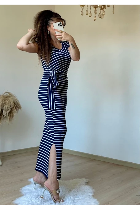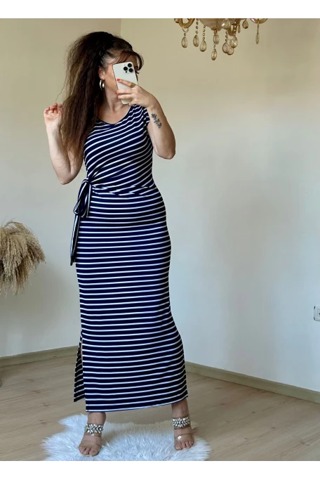 Lacivert Çızgılı Elbıse