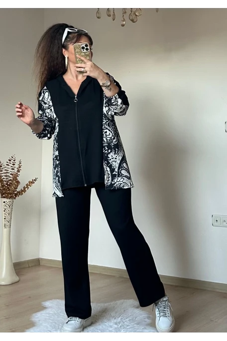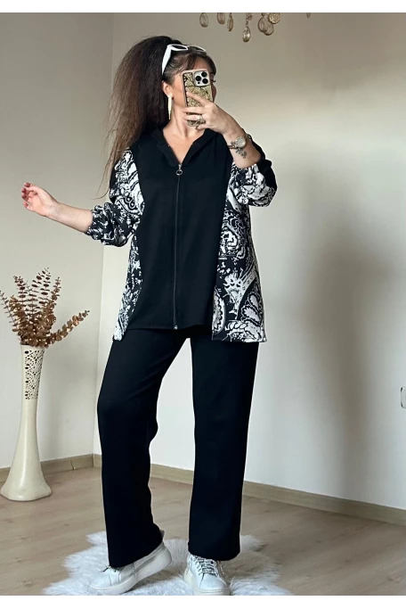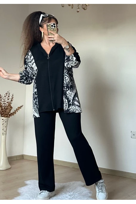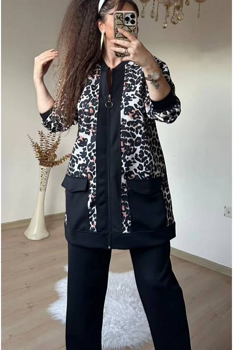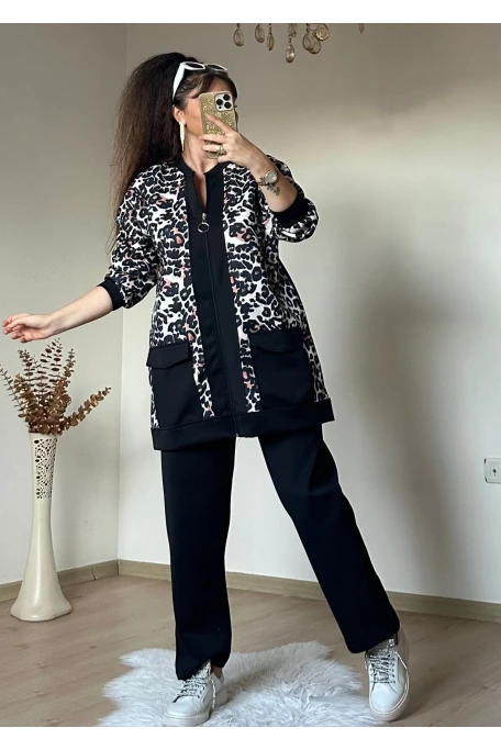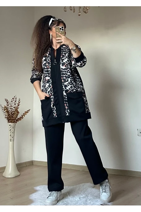 Fermuarlı Leopar Takım Siyah