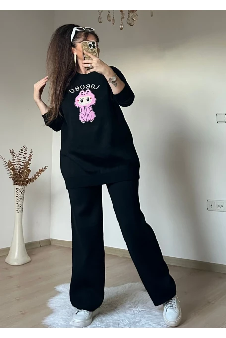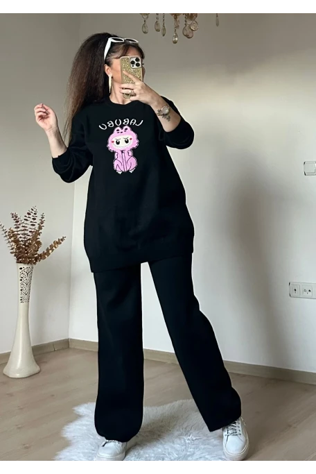 Karakter Baskılı Tiriko Takım Sıyah