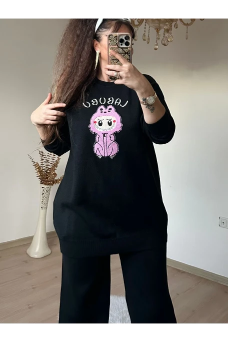 Kilim Desen Büyük Beden Takım Siyah