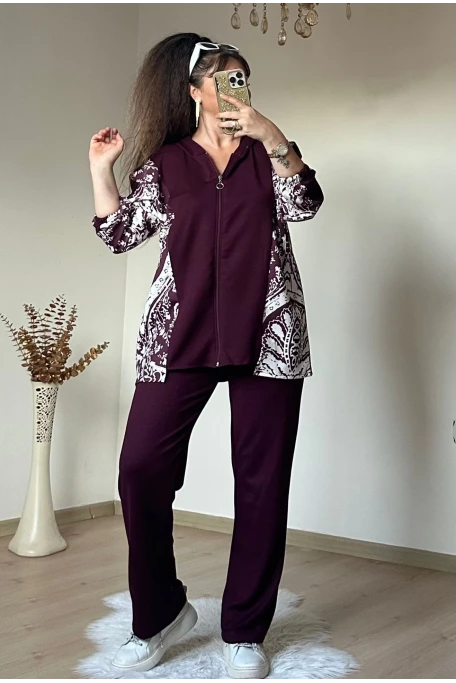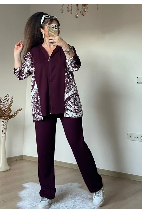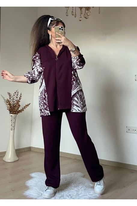 Kilim Desen Büyük Beden Takım Bordo