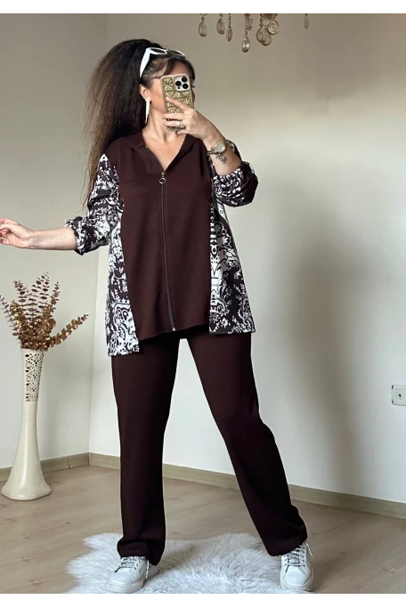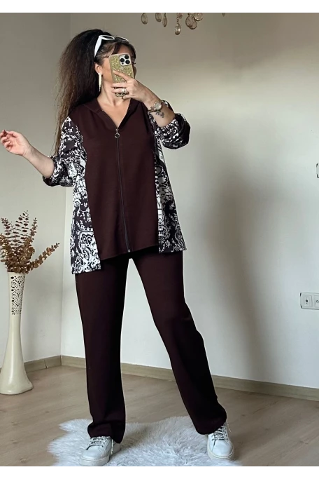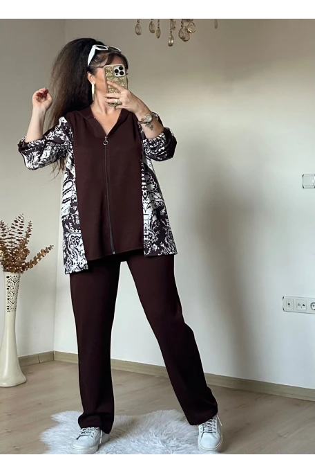 Kilim Desen Büyük Beden Takım kahve