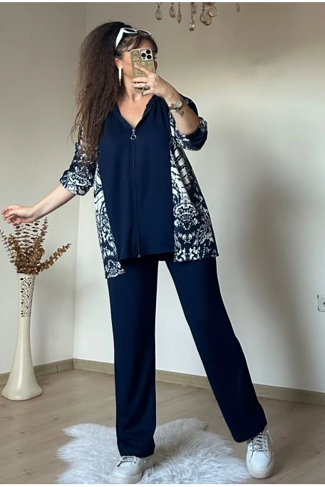 Kilim Desen Büyük Beden Takım Lacivert