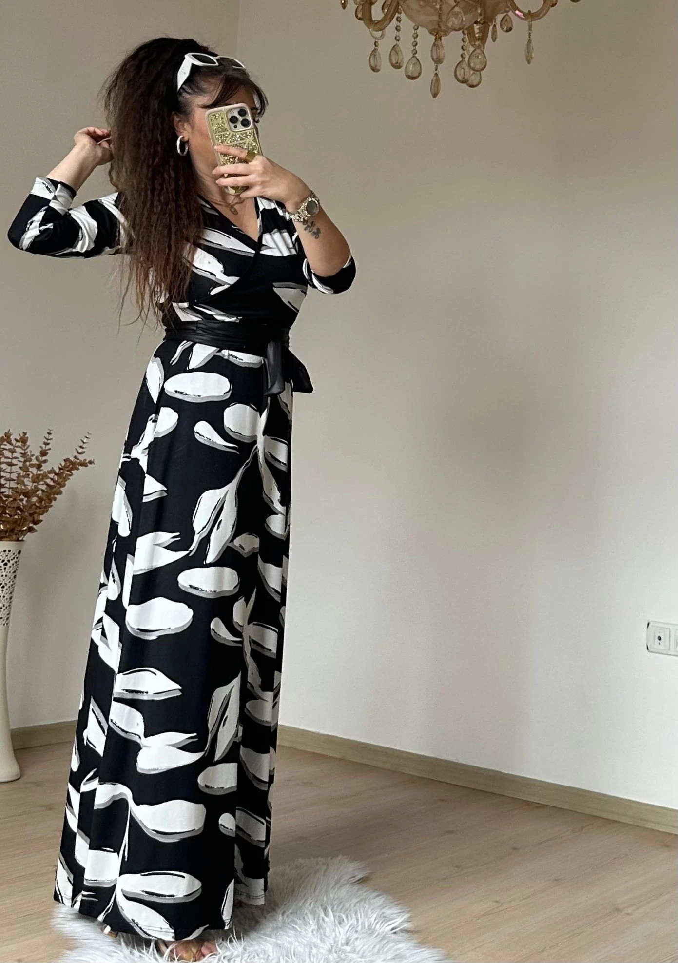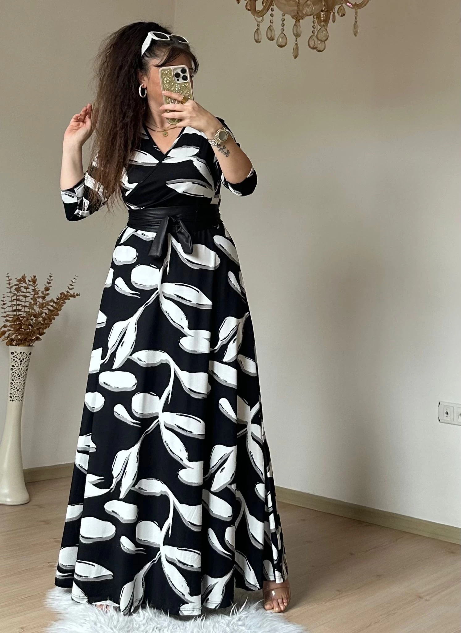 Tam boy Süet Kahve Zikzak Desen Elbise